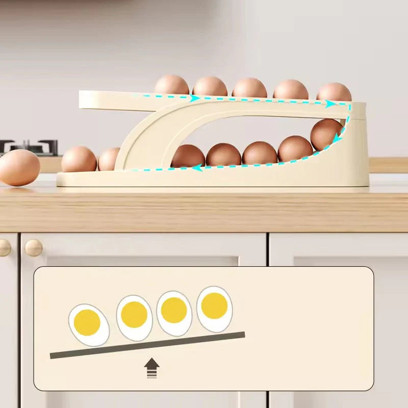 2. Efficient Storage: Keep your eggs in perfect order with our Egg Slider Holder. Its double-layered design can store up to 14 eggs compactly and efficiently, saving valuable fridge space.